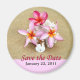Save the Date magnet with plumeria on shells on the beach. Can customize with your event date.
