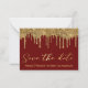 save the date gold dripping glitters red wedding note card