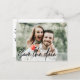 Featuring a stylish handwritten script, this postcard is the perfect canvas to showcase your favorite engagement photo. Whether you prefer the timeless elegance of a black and white shot or the vibrant energy of a color photo, this design complements your image with grace and sophistication.