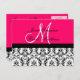 Save the Date Hot Pink Monogram Damask Card