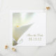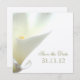 Customizable Save the Date invitation with white calla lily photograph. An elegant choice to announce your wedding date. Personalize it with your wedding party details.