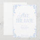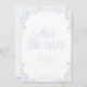 White and blue coastal vibe/ beach wedding vibe save the date. Simple and elegant. Customizable