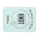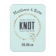 Modern Save the Date announcement has knot style wreath with small turquoise heart and gray modern text font on seafoam background