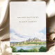 Announce your wedding with this elegant watercolor destination "Save the Date" card, featuring a captivating depiction of the Loire Valley, France. The card showcases a delicate blend of pastel hues, including sky blue, lush green, soft lavender, and warm beige. The watercolor artwork beautifully captures the grandeur of a French chateau and the picturesque landscape, evoking a sense of romance and sophistication. Perfect for couples planning a destination wedding, this card sets the tone for an unforgettable celebration. Customize with your wedding details for a timeless and charming first impression.