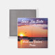 Custom Save the date magnets with red roses. Add your name and wedding date to let your wedding guests know to reserve this date for your wedding. This design features a beautiful sunset.
