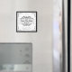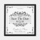 Save The Date magnet for the refrigerator shown. This one is square and shown in a black, white and silver-gray vintage flourish theme. Preformatted text for you to personalize with names and date. Customize this item and change the text to yours.