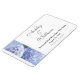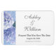 This Save the Date magnet is shown in a classic formal layout in the color white with Black and Gray text and script text highlighting the Bride and Groom names and accented with a lavender blue hydrangea flowers photo print. Customize this wedding invitation by clicking on the customize button,go to the right to the text boxes and change the appropriate text to yours.