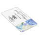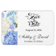 Save the Date Magnet is shown in a classic formal layout in the color white with Black text and script text highlighting the Bride and Groom names and accented with a hydrangea flowers print.