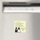 It was a bit smaller than expected, but I was too excited to check dimensions. The product itself send well printed though the grey text is a bit paint. Magnet worked perfectly on my fridge.