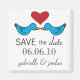 Save the date magnet - lovebirds Matching stamps, save the date postcard, and stickers also available on zazzle. Matching invitation suite available on www.darmanddesigns.com (fun01). All colors can be customized to your needs.