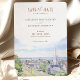 Announce your wedding with this charming watercolor destination "Save the Date" card, featuring a beautiful depiction of Martha's Vineyard, Massachusetts. The card showcases a harmonious blend of soft pastel hues, including sky blue, light green, and sandy beige. The detailed watercolor artwork captures the quaint charm of Martha's Vineyard with its classic New England architecture, tree-lined streets, and serene coastal scenery, evoking a sense of romance and elegance. Perfect for couples planning a destination wedding, this card sets a picturesque and inviting tone for your special day. Customize with your wedding details for an unforgettable first impression.