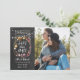 This boho photo save the date card features your special photo and string lights over a pretty mason jar enclosing your save the date message above your names, date and venue on a rchalkboard background. Designed by Thisisnotme©