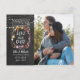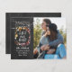 This boho photo save the date card features your special photo and string lights over a pretty mason jar enclosing your save the date message above your names, date and venue on a chalkboard background. The reverse features a matching chalkboard background. Designed by Thisisnotme©