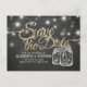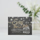Wedding Save The Date Postcard Templates - Elegant Faux Gold Foil Save the Date Lettering Script and Vintage Mason Jar String Lights with Grunge Black Chalkboard Background.