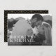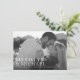 Save the Date Wedding Announcement. Modern minimalist text over full-bleed photo.