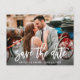 Save The Date Modern Brush Script Couple Photo Postcard