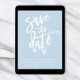 SAVE THE DATE modern calligraphy script pale blue