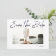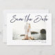 Save the Date Wedding Announcement. Modern simplicity pen stroke handwriting script text over centered photo. Optional wet sand backer. Completely versatile do-it-yourself style layout. Easily adjust the size, style and placement of all text elements. White mist filter is used for display, but you can change this by clicking on the advanced Customize mode.