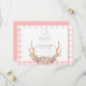 Wedding Save the Date | Casual Style Monogram, Painted Floral Coral Rose Bouquet Antlers set off by a coral gingham border - color coordinated back of card - Original artwork created for the BarefootBride™ by © WhimsicalArtwork™ This is part of a matching Bridal Wedding Stationery Suite and Baby Shower Suite All Text Including font styles and colors are customizable - We used a medium gray font color - if you need help please feel free to contact me.