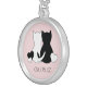 Save the date necklace, cat, kitten, pink heart. Pink black colors, modern design. Add your important date, personalize this necklace! Cute, original drawing of 2 cute cats, kittens with tiny hearts. Great gift for Valentine's Day, engagements, weddings, birthdays.