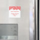 It was a bit smaller than expected, but I was too excited to check dimensions. The product itself send well printed though the grey text is a bit paint. Magnet worked perfectly on my fridge.