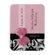 An elegant pink and black Parisian style save the date postcard with trendy black and white damask and a girly pink ribbon wrapped around a feminine pink lace background. Personalize by adding the name of bride and groom and their wedding date. Perfect Wedding Day Reminders