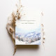 Announce your wedding with this winter wonderland watercolor destination "Save the Date" card, featuring a stunning depiction of Park City, Utah. The card showcases a beautiful blend of soft pastel hues, including icy blue, snowy white, and warm beige. The detailed watercolor artwork captures the essence of Park City's picturesque mountains, charming village, and snow-covered landscape, evoking a sense of romance and winter elegance. Ideal for couples planning a destination wedding, this card sets a magical and inviting tone for your special day. Customize with your wedding details to create an unforgettable first impression.