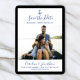 Send out your save the dates in style with this beautiful card featuring your photo, custom text and a nautical anchor on top. The backside features a blue quatrefoil patterned background (easily change the color by clicking on customize and then scrolling down to the color picker). Chic and trendy yet simple and classic - perfect for a beach, lake or ocean side wedding theme.