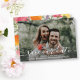 Send your wedding save the dates out in style with this beautiful card featuring your photo and a beautiful white script font on the front. The backside features your save the date details surrounded by a hand-painted watercolor flower frame. Modern and trendy yet elegant and classic - perfect for a spring, summer, fall or destination wedding. Photo Credit: Carly Rae Hobbins, Unsplash