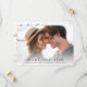 This design features a modern minimalist minimal simple photo, a QR code online website URL, a stylish trendy engaged couple picture, a wedding save the date invitations, an engagement two 2 double photo, a scan QR code web address, a contemporary basic plain simplistic, a modern wedding save the date, a creative unique modern typography, a white text overlay design style