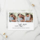 This design features an save the date photo card perfect for weddings, with an elegant, black and white style with a modern minimalist, simple, typography design, A classy, calligraphy script, with a scannable QR code, perfect for any couples photo.