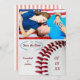 Save the date with a baseball theme in mind! Upper template photo and text templates provided on this beautiful close-up of a baseball. Save the date surrounded by gold crown at top, blue green laurels on each side and baseball underneath. Baseball stitch stripes on reverse side.