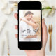 Transparency covering custom and personalized photo on the front and back of elegant and modern Save the Date Wedding Invitations - includes beautiful and elegant script typography for the special Wedding day celebration.