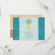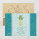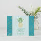 Personalize pineapple hearts save the date cards overlaying tropical greenery.