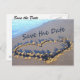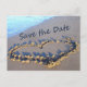 Save the Date postcards with a heart drawn in the sand. Personalize with your own info in the spaces provided, and get the matching postage stamps for a designer look.