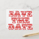 Gorgeous vintage font in red with the message "Save The Date" filling the whole space on the front of the card. Stylish and original design, would suit a traditional theme as well as a modern, quirky style theme. Other colors available in my store under the "Slogan" section.
