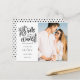 This modern hand script photo save the date card features your special photo and a hand script save the date above your names, date and venue. The reverse features a polka dot pattern which you can customise to your favourite color or delete and add additional celebration info. Designed by Thisisnotme©