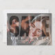 This design features a modern minimalist vellum overlay, a simple elegant photo picture couple, a stylish trendy simple typography, a save the date typography text, with unique cool contemporary style, for an engaged engagement picture photo, a simplistic elegant modern minimal, with a one 1 photo layout template, a photo overlay clear transparent, a wedding save the date cards