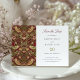 This 'Save the Date' card is a beautiful homage to William Morris's iconic 'Strawberry Thief' design, perfect for setting the tone of your upcoming wedding. The intricate pattern is rich with symbolism and natural imagery, featuring birds, strawberries, and florals in a harmonious palette of deep reds, lush greens, and soft creams. The detailed artwork wraps the card in a sense of timeless romance, while the elegant typography announces your special day. This card not only serves as a preliminary announcement but also as a keepsake piece of art, inviting your guests to mark their calendars for an event that will be as memorable as the design is classic.
