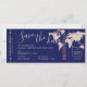 Rose Gold Pink and Navy Blue World Map Boarding Pass Save the Date Airplane Ticket Card with a cool modern design with a neutral light rose blush pink foil effect world map travel theme design. Text and background colors and layout is editable so you can create your own design using this template for a unique boarding pass which was designed with a destination wedding or travel theme wedding or vow renewal celebration in mind.