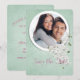 round frame with white flowers and ivy photo frame on green texture for Save the Date