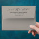 A unique design that matches our Rustic elegant collection. The envelope features a taupe beige outside color with a whitewashed barnwood pattern inside. On the front flap an elegant calligraphy "save the date" header along with a template space to personalize with your return address to save time addressing your save the date cards. If you need help, additional colors or matching pieces please contact me (Maria) using the contact button below or directly at info@the52edit.com ...I'm happy to help!