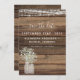 Rustic Farmhouse String Lights and Baby's Breath in a Jar Save the Date Wedding Invitations on Wood background - includes beautiful and elegant script typography with modern Country Farm House Sparkle for the special Wedding day celebration.
