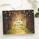 Rustic Forest Path String Lights Save the Date Wedding Engagement Announcement Card