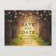 Save The Date Rustic Forest Path String Lights Announcement Postcard