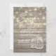 Save The Date Wedding Invitation Card Templates - Elegant Faux Gold Foil Save The Date Lettering Script and Vintage Mason Jar String Lights on Rustic Wood Background.