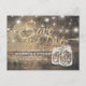 Wedding Save The Date Postcard Templates - Elegant Faux Gold Foil Save The Date Lettering Script and Vintage Mason Jar String Lights on Rustic Wood Background.