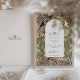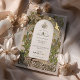Presenting a sophisticated and culturally rich Save the Date invitation, perfect for announcing your special day. This exquisite card features an Art Nouveau design, reminiscent of Alphonse Mucha's style, adorned with sage green and gold foil accents that exude elegance. The central arch elegantly frames the couple's names, set against a delicate cream background. Islamic calligraphy adds a touch of tradition and personal significance, making it ideal for Muslim couples seeking a blend of cultural heritage with classic artistry. The lustrous gold foil detailing on a sage green palette creates a luxurious feel, while the intricate floral patterns and flowing lines give a nod to the natural beauty that would complement a wedding destination surrounded by nature's splendor.