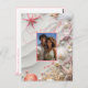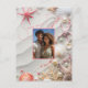 Save the Date postcard with your favorite photo. Beautiful tropical seashells, pink starfish, and pink and white pearls on a white sand beach. Perfect for your destination wedding.