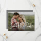 You're engaged! Spread your happy news and the date of your big day with this one-photo save the date. Your engagement photo will be the star of the show against the simple white script of "save the date" and the subtly dotted backer can be easily changed to a color that coordinates with your photo or your wedding by clicking the "customize" button. Let the happily ever after begin!